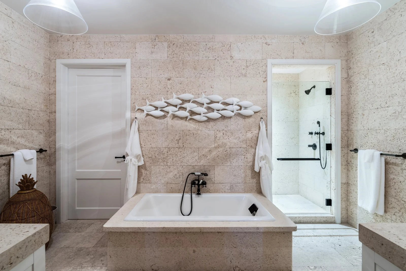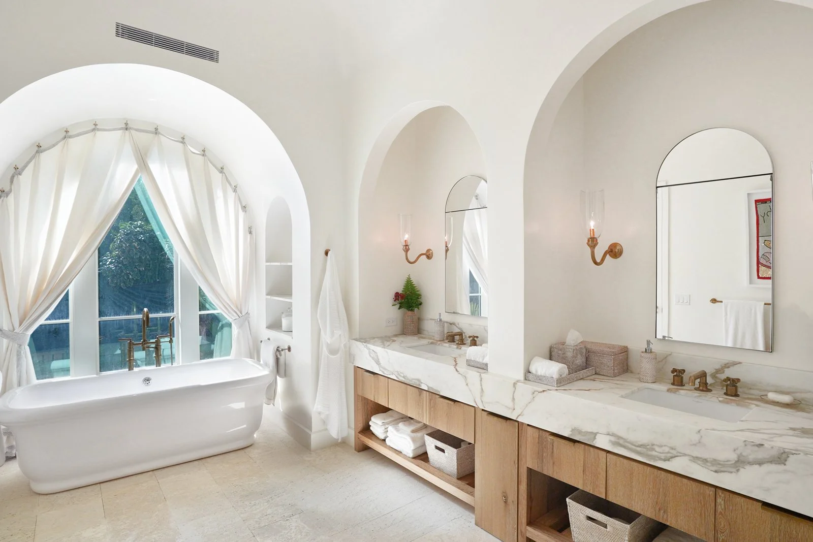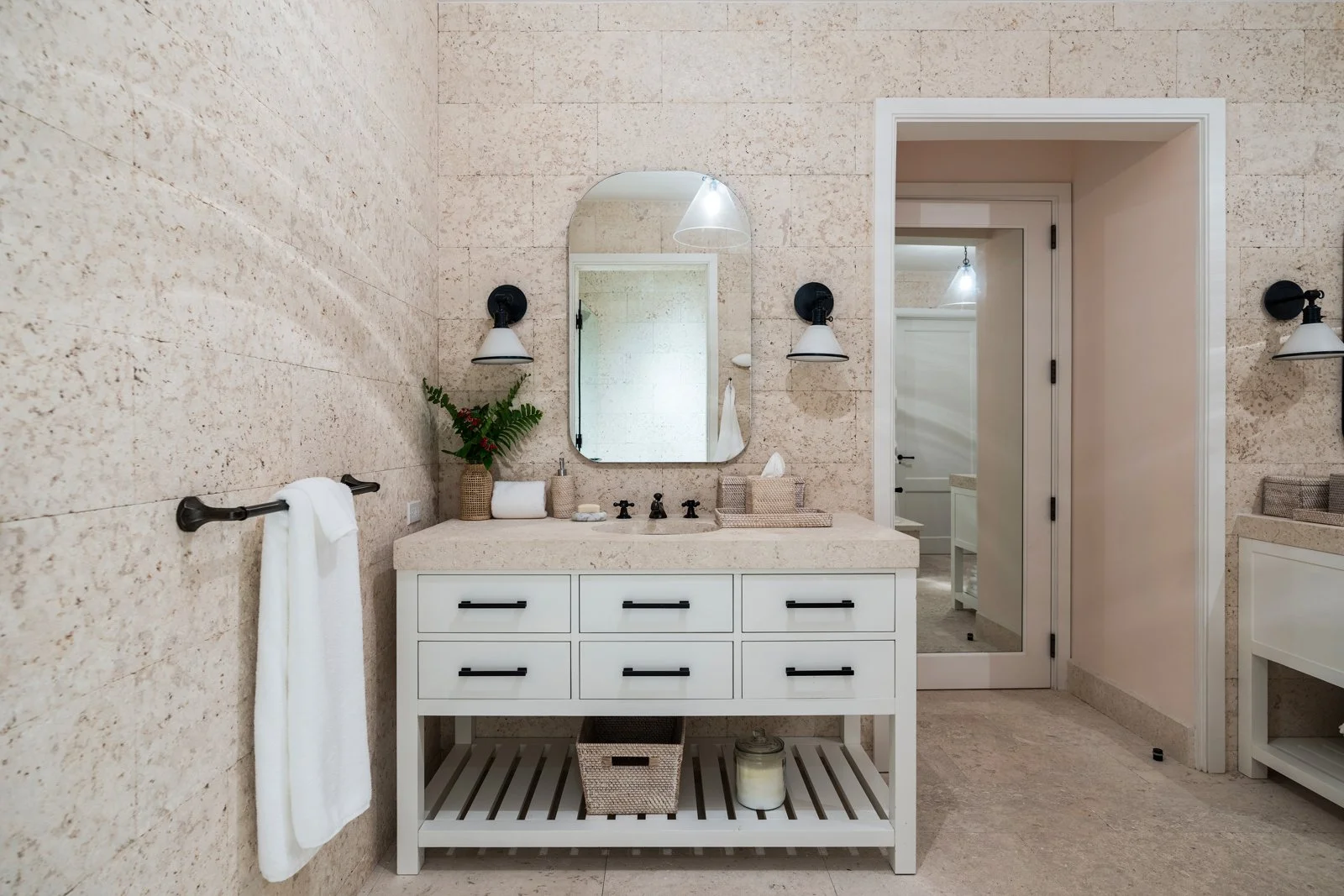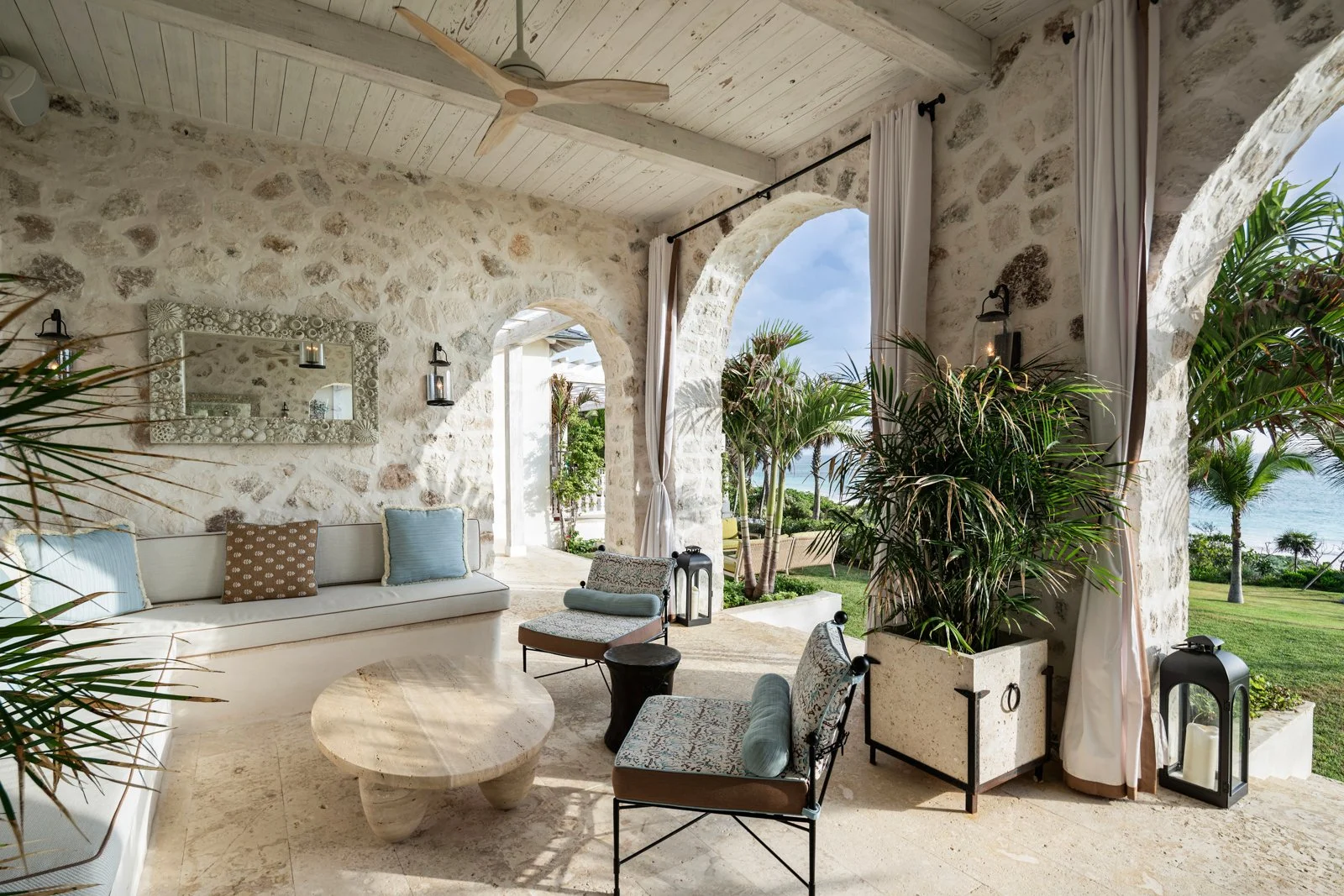Framed by lush gardens, Two Palms has a warm, inviting layout built around a central pool. The stone paths and open-air spaces give it the feel of a private hideaway. Inside, arched doorways and neutral tones keep the mood relaxed and refined.